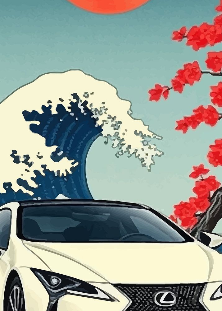 Der Lexus LC Ukiyo-e ist ein beeindruckendes Kunstwerk, das das elegante, futuristische Design des Lexus LC mit dem traditionellen japanischen Ukiyo-e-Stil verbindet. Die sanften, geschwungenen Kurven und raffinierten Details des Fahrzeugs werden durch die lebendigen Farben, fließenden Linien und komplizierten Muster des Ukiyo-e neu interpretiert, wodurch eine harmonische Mischung aus luxuriösem Automobildesign und der zeitlosen Schönheit der japanischen Kunsttradition entsteht.