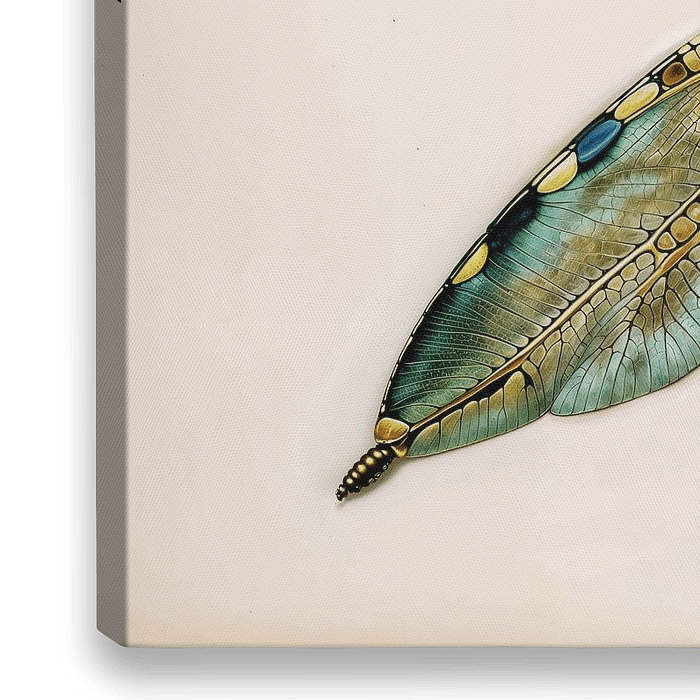 Eine Libelle im Stil früherer wissenschaftlicher Illustrationen auf vergilbtem Papier. Allerdings hat die Libelle drei Flügelpaare, was sie auch ein wenig wie einen Schmetterling aussehen lässt. Mit künstlicher Intelligenz generiert.
