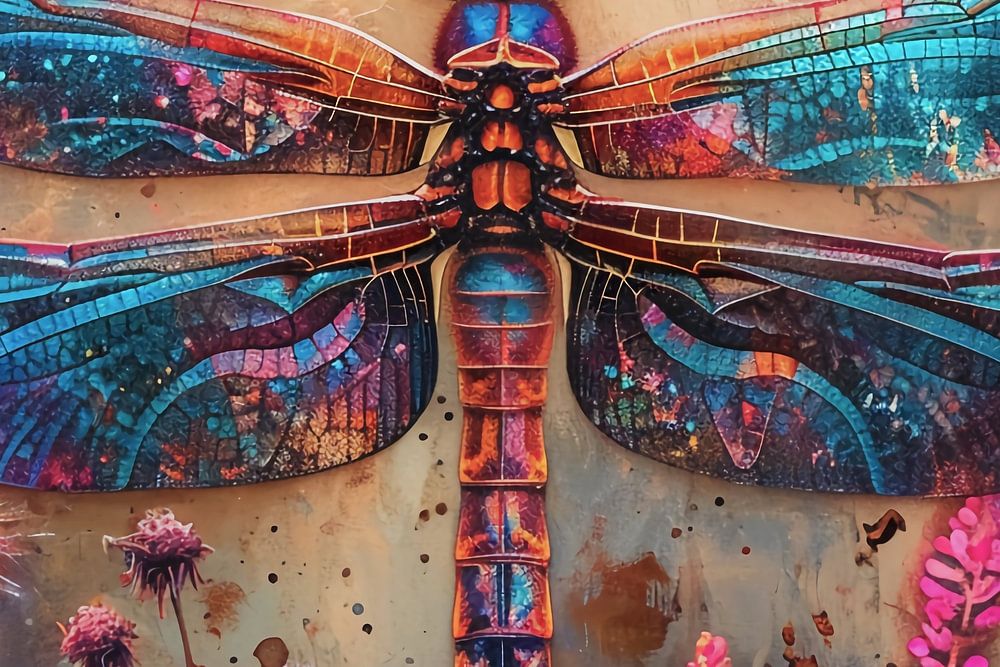 Verzauberte magische Libelle und Wildblumen Gemälde