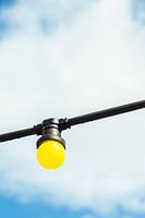 Eine gelbe Lampe mit einem blauen Himmel im Hintergrund