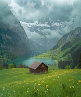 Bestelle dieses Landschafts-Wandbild Licht durchbricht Bergnebel von fernlichtsicht als Reproduktion auf Leinwand, Alu-Dibond, als Poster, Fototapete oder Acrylglasbild.