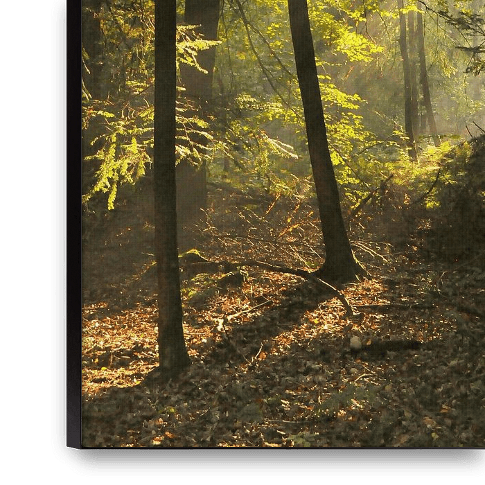 Bestelle dieses Landschafts-Wandbild Licht leuchtet im Kiefernwald von Corinne Welp als Reproduktion auf Leinwand, Alu-Dibond, als Poster, Fototapete oder Acrylglasbild.