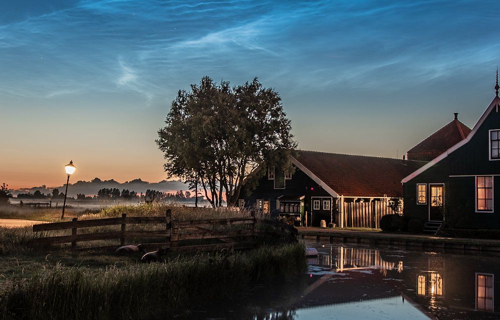 In de zeer vroege ochtend van 22 juni 2019 waren lichtende nachtwolken goed zichtbaar op de Zaanse Schans.