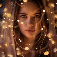 Bestelle dieses Porträt Lichterketten-Portrait einer Frau von Poster Art Shop als Reproduktion auf Leinwand, Alu-Dibond, als Poster, Fototapete oder Acrylglasbild.