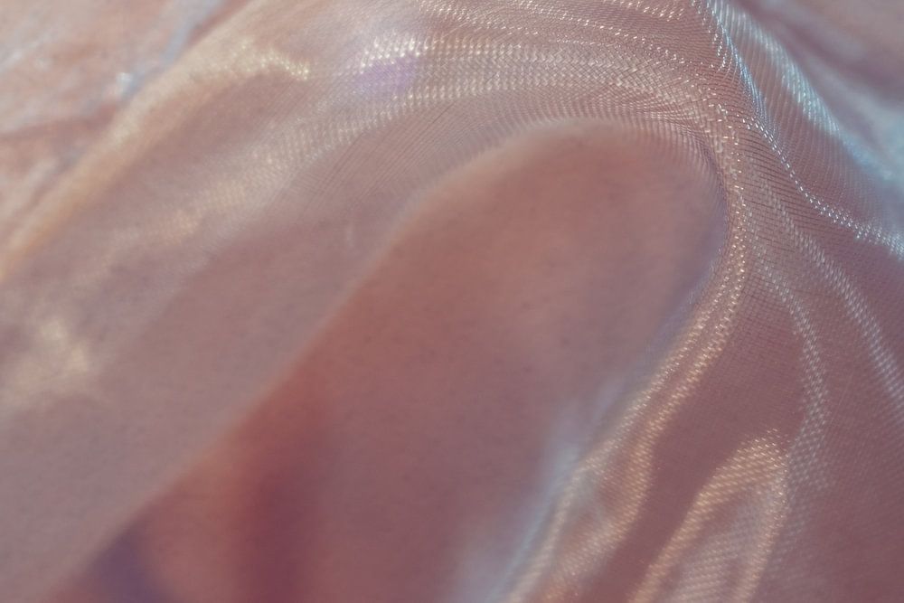 Dieses Werk zeigt eine abstrakte Nahaufnahme eines zarten, durchscheinenden Stoffes in einem blassen Rosé- oder Pfirsichton. Die weichen Falten und feinen Knicke des Materials erzeugen ein subtiles Spiel aus Licht und Schatten, das dem Bild eine ruhige, fast poetische Tiefe verleiht. Die Inspiration für dieses Bild war das natürliche Verhalten von Licht auf leicht glänzenden Textilien – ein flüchtiger Moment, der durch fotografische Reduktion in eine stille Komposition überführt wurde.
