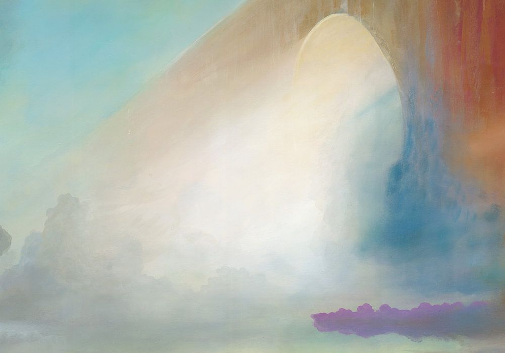 Dieses Gemälde präsentiert eine ungewöhnliche Lichtöffnung, die aus einer mauerähnlichen Struktur am Himmel hervorzugehen scheint. Diese "Mauer" vermittelt nicht den Eindruck von Festigkeit und Struktur wie eine gewöhnliche Mauer, sondern eher die Anmutung eines durchlässigen Vorhangs. Man könnte fast meinen, leichte Schwingungen oder Bewegungen in dieser Mauer zu erahnen, obwohl ihre Details nicht besonders ausgefeilt sind.