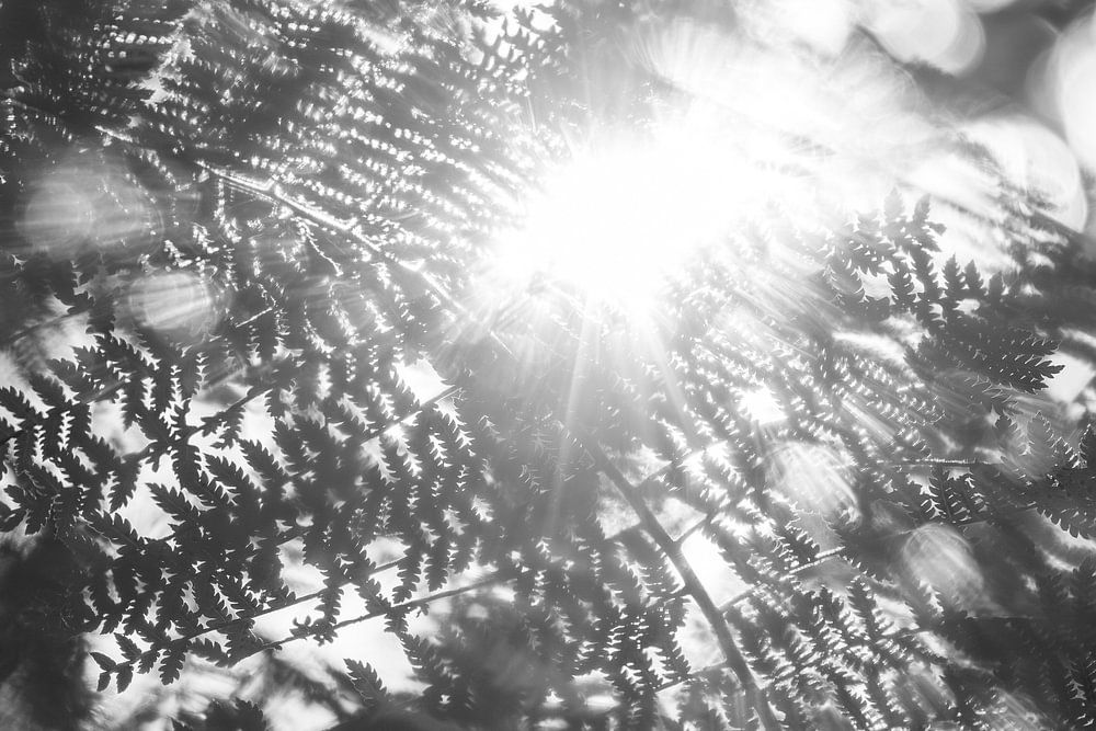 Diese Schwarz-Weiß-Fotografie mit dem Titel "Lichtspiel im Farnwald" zeigt eine ätherische Szene, in der das Sonnenlicht durch ein dichtes Farndach bricht. Die zarte Struktur der Farnblätter wird durch die kontrastreiche Beleuchtung hervorgehoben, wodurch ein Gefühl von Tiefe und Komplexität entsteht. Es ist ein visuelles Gedicht, das den ewigen Tanz zwischen Licht und Natur einfängt, ideal für die Wand in einem Raum, der der Ruhe und Kontemplation gewidmet ist. Das Bild lädt den Betrachter dazu ein, die subtilen Texturen und Muster zu erforschen, die uns die Natur bietet, und wäre ein perfektes Gesprächsthema in jedem minimalistischen oder modernen Interieur.