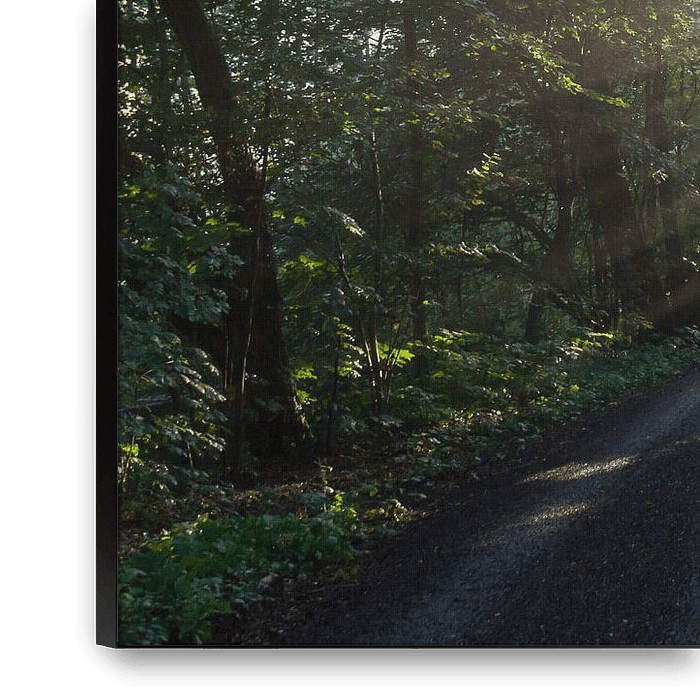 Bestelle das Foto Lichtstimmung im dunklen Wald von Adriana Müller als Reproduktion auf Leinwand, Alu-Dibond, als Poster, Fototapete oder Acrylglasbild.