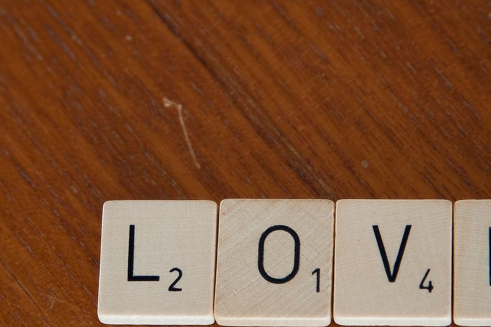 Liebe aus hölzernen Scrabble-Buchstaben.