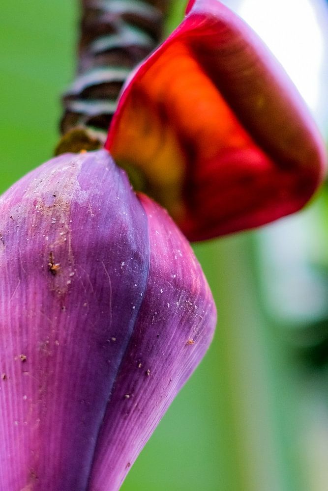 Lila Bananenblüte vor grünem Hintergrund