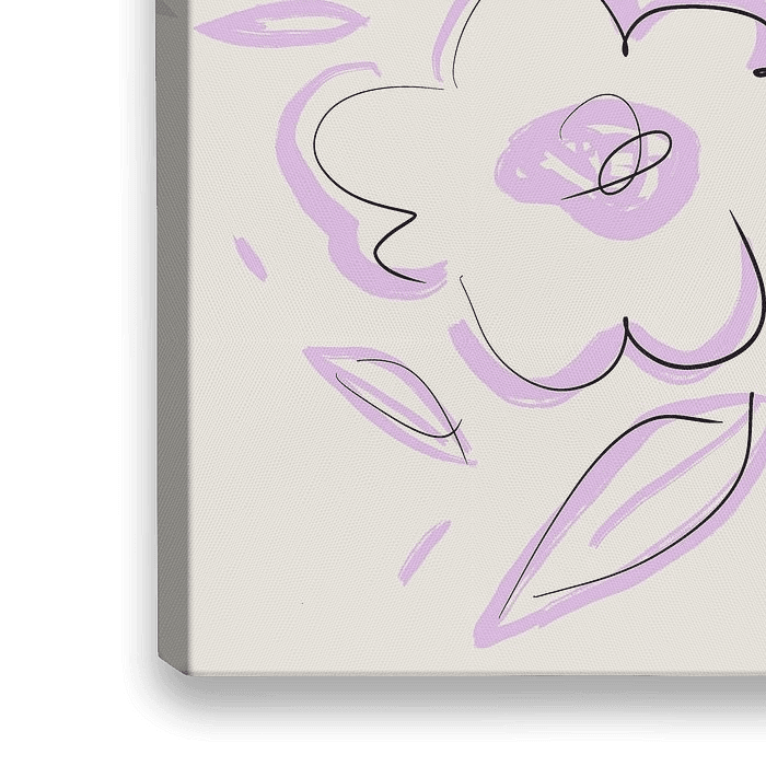 Moderne Illustration von umrissenen Blumen in Lila und Schwarz.