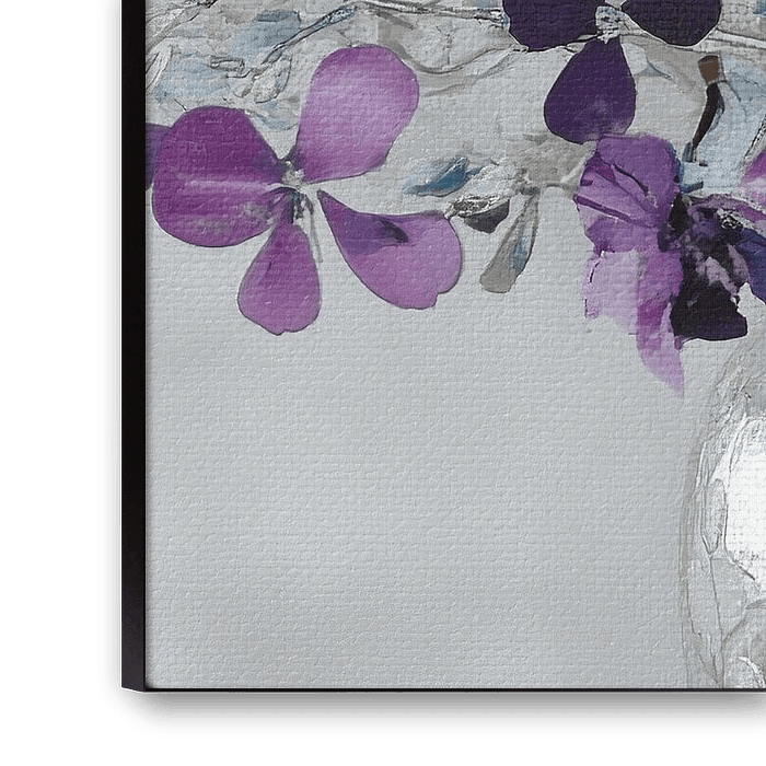 Details: Blumenbild, Blumenvase, lila Blumen, farbenfroh, natürlich, Glasvase, Innendekoration, modern, Malerei, Kunst