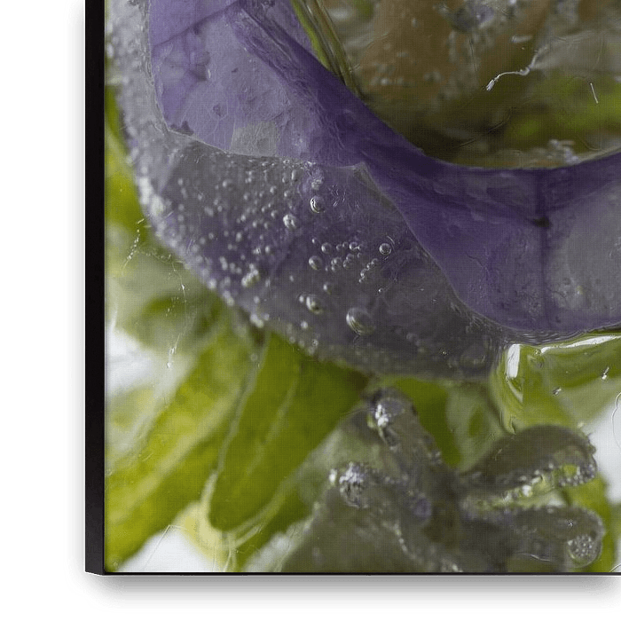 Bestelle dieses Blumen-Wandbild Lila Glockenblume in Eis 3 von Marc Heiligenstein als Reproduktion auf Leinwand, Alu-Dibond, als Poster, Fototapete oder Acrylglasbild.