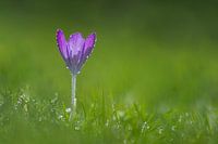Lila Krokus bedeckt mit Tautropfen von John van de Gazelle fotografie
