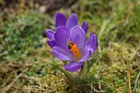 Über „Lila Krokus mit Biene im Frühling“ von Karsten Mücke