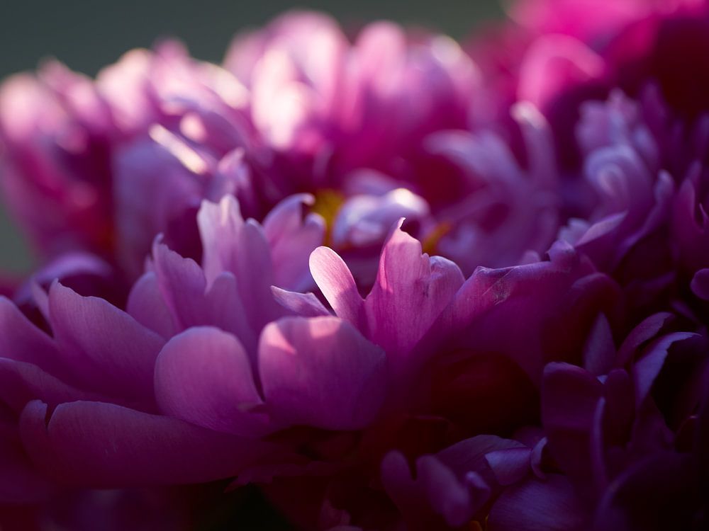 Foto Pfingstrose im sommerlichen Abendlicht im Garten, lila Blüten, Nahaufnahme mit Phase One IQ 140 DB, freie Arbeit, Fotograf Fred Roest,