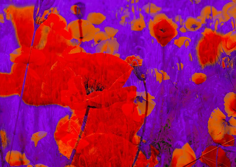 Digitale Bildbearbeitung von Mohnblüten und Mohnfeldern.