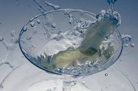 Bestelle dieses abstrakte Wandbild Limetten fallen in ein Glas 1 von Marc Heiligenstein als Reproduktion auf Leinwand, Alu-Dibond, als Poster, Fototapete oder Acrylglasbild.