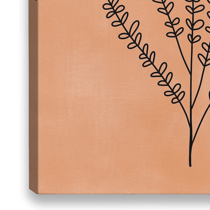Moderne Illustration, die digital gemalt ist. Auf dem Bild ist eine Pflanze, die mit der Lineart-Technik gemalt wurde. Der Hintergrund ist abstrakt und in einem warmen orange.
