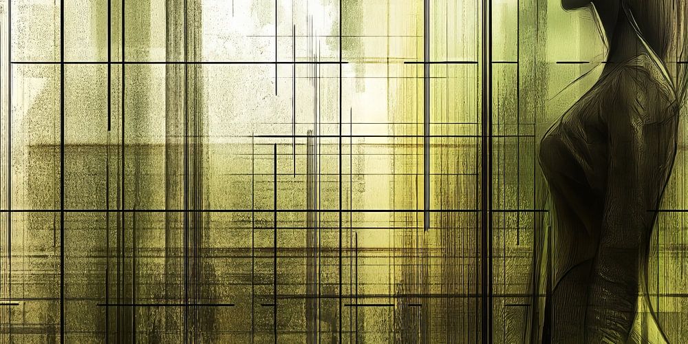 Lines of Growth ist ein abstraktes Kunstwerk, das die natürliche Welt in einem futuristischen Licht darstellt. Wenn man durch die Bäume blickt, scheint das Bild die Weite des Waldes einzufangen, aber mit einer elektrisierenden, dynamischen Wendung. Die übliche Ruhe der Natur wird durch scharfe, geometrische Linien ersetzt, die die Strukturen des Lebens, des Wachstums und der Evolution darstellen. Die linearen Muster scheinen nach oben zu explodieren und ziehen den Blick des Betrachters in Richtung des Lichts darüber, was die kontinuierliche Reise zu Wachstum und Verständnis symbolisiert. Das Zusammenspiel von Grün- und Goldtönen suggeriert ein empfindliches Gleichgewicht zwischen dem Natürlichen und dem Technischen, als ob der Wald selbst von einer unsichtbaren Kraft umgewandelt würde. Dieses Kunstwerk überschreitet die Grenzen konventioneller Landschaften, indem es natürliche Formen mit digitaler Abstraktion vermischt, um eine Erfahrung zu schaffen, die sowohl vertraut als auch unwirklich ist. Die Kombination aus linearer Bewegung und organischen Bildern stellt unsere Wahrnehmung der Welt um uns herum in Frage und lädt zu einer tieferen Reflexion über die Beziehung zwischen der Natur und dem digitalen Zeitalter ein.