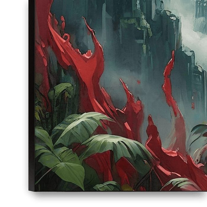 Bestelle dieses abstrakte Wandbild Lippenstift-Dschungel II von Retrotimes als Reproduktion auf Leinwand, Alu-Dibond, als Poster, Fototapete oder Acrylglasbild.