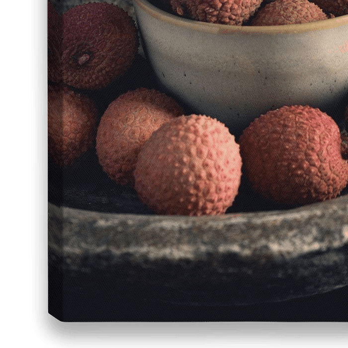 Bestelle dieses Stilleben Litschis von Valerie Boehlen als Reproduktion auf Leinwand, Alu-Dibond, als Poster, Fototapete oder Acrylglasbild.