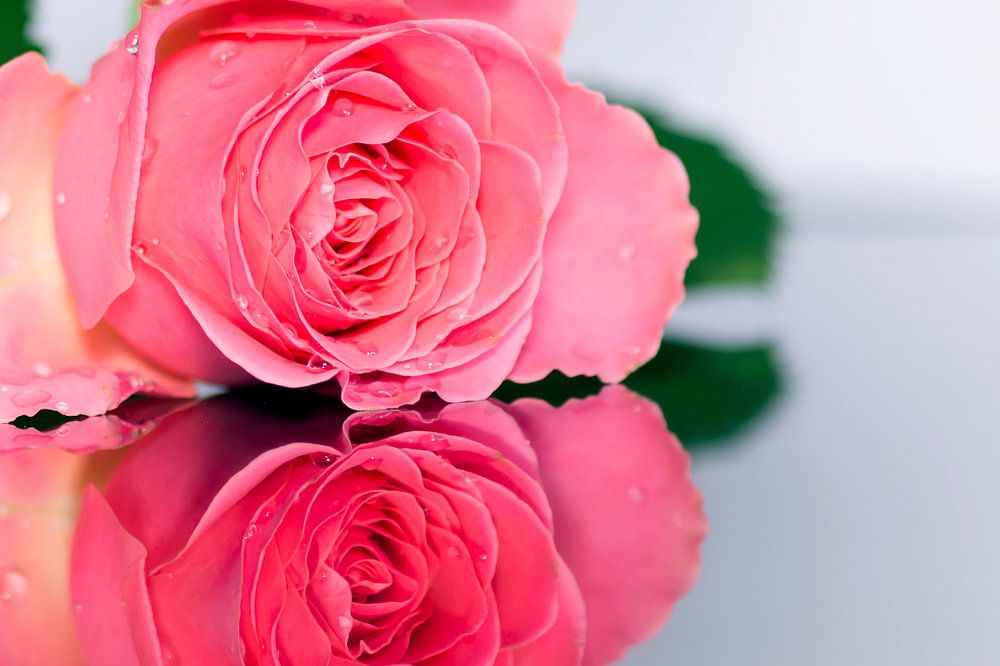 Dieses Makrofoto einer rosa Rose schön gespiegelt. Die Wassertropfen geben einen schönen Effekt. Das Licht fällt durch eine Reflexion-Screen, ich die Farben betroffen habe, jetzt schön in der Rose. Makro-Fotografie hat viele schöne Seiten!