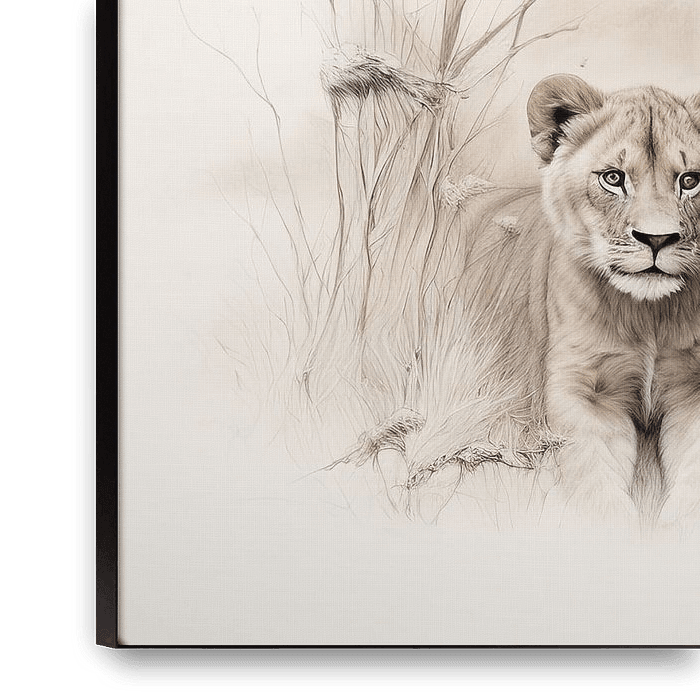 Ihre gewählte Kunst auf Leinwand, gespannt in einem Aluminiumrahmen. Schnell und einfach austauschbar für eine frische Ausstrahlung und ganz nach Ihren Wünschen.
