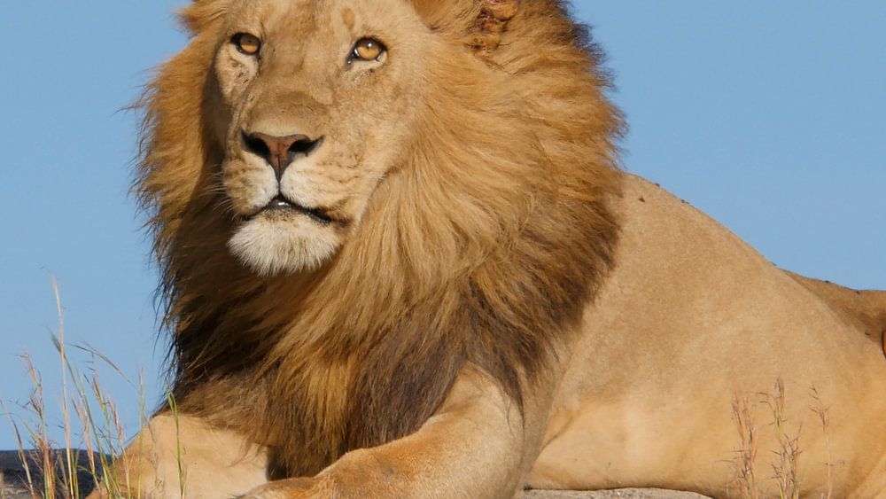 Männlicher Löwe auf einem Felsen im Serengeti-Nationalpark in Tansania.