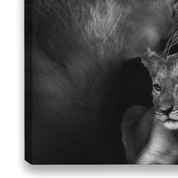 Eine Löwenfamilie mit 3 Jungen, in schönen Schwarz-Weiß-Kontrasten. Diese Werke sind von sehr hoher Qualität und ein echter Blickfang, den Ihr Besuch sicher bemerken wird.