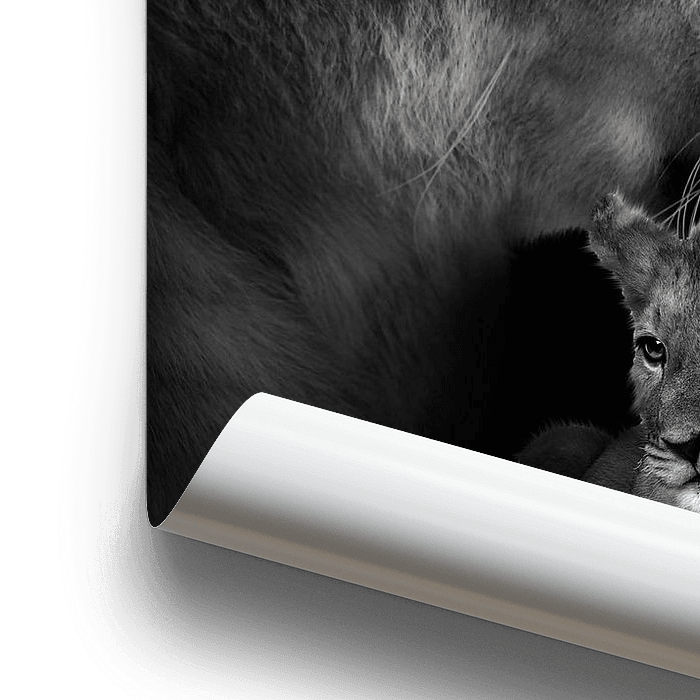 Eine Löwenfamilie mit 3 Jungen, in schönen Schwarz-Weiß-Kontrasten. Diese Werke sind von sehr hoher Qualität und ein echter Blickfang, den Ihr Besuch sicher bemerken wird.