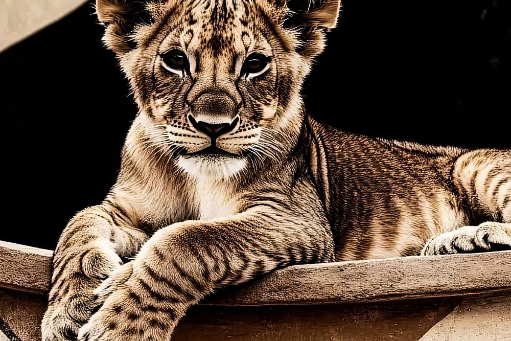 Diese wunderschöne Wanddekoration zeigt ein liebenswertes Löwenbaby auf einem künstlerischen und abstrakten Hintergrund. Das Design kombiniert die natürliche Schönheit eines Tieres mit einem stilvollen, rustikalen Look, der perfekt zu modernen Innenräumen passt. Die warmen Braun-, Beige- und Goldtöne schaffen in jedem Raum eine gemütliche Atmosphäre. Ob im Schlafzimmer, im Büro oder im Wohnzimmer, dieses Kunstwerk bringt Charakter und ein Gefühl von Abenteuer in Ihren Raum. Eine perfekte Wahl für Tierliebhaber und einzigartige Dekorationsstücke.