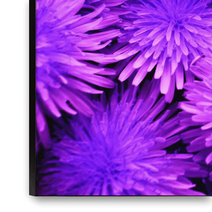 Bestelle dieses Blumen-Wandbild Löwenzahn in lila von Andrea Meister als Reproduktion auf Leinwand, Alu-Dibond, als Poster, Fototapete oder Acrylglasbild.