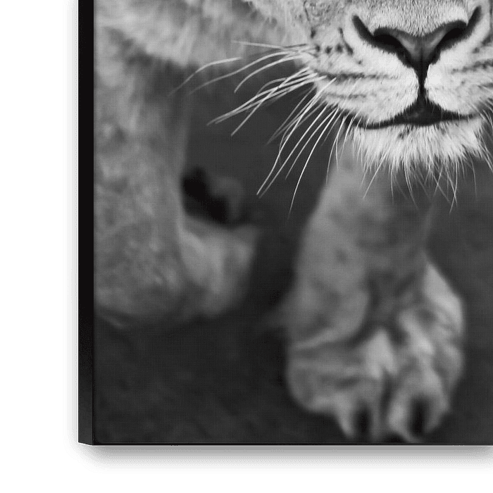 Die Löwin schaut dich an, das Gesicht der Livitz und die Look.s. Löwinnen schwarz-weiß Foto, farbig gelb