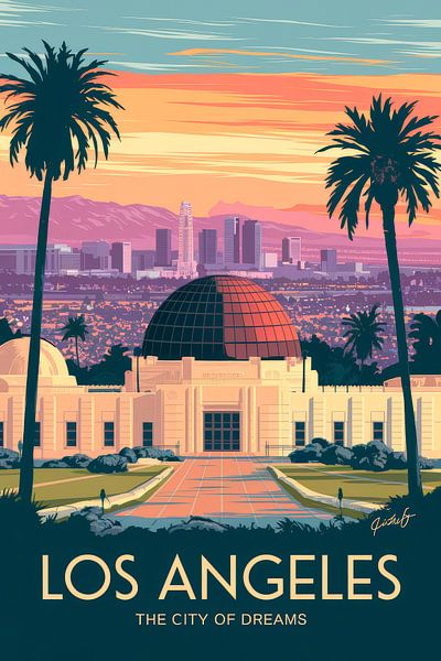 Bestelle das digitale Kunst Bild Los Angeles, California Vintage Travel Poster von Poster Art Shop als Reproduktion auf Leinwand, Alu-Dibond, als Poster, Fototapete oder Acrylglasbild.