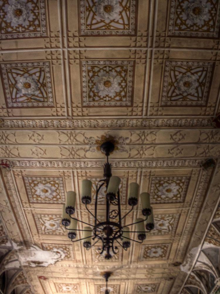 Verlassener Tanzsaal eines alten Schlosses. Hier ist die Zeit stehen geblieben, Staub bedeckt die einstige Schönheit. Sonnenstrahlen scheinen zum Fenster hinein und tauchen den Raum in eine märchenhafte Atmosphäre. Einst ein Meisterwerk der Architektur nun im dornröschenschlaf.