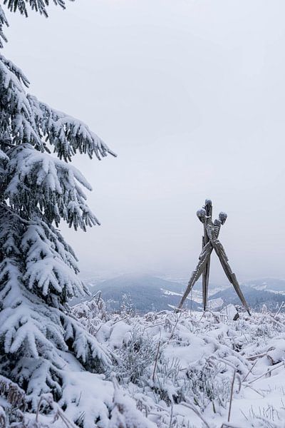Das Lothardenkmal zeigt sich im Winterkleid über dem Schwarzwald.