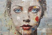 Lotte Portrait - abstrakte Malerei / Mischtechnik gemalt. Schöner Kontrast zwischen dem anspruchsvollen Porträt und der rohen Collage/Maltechnik.