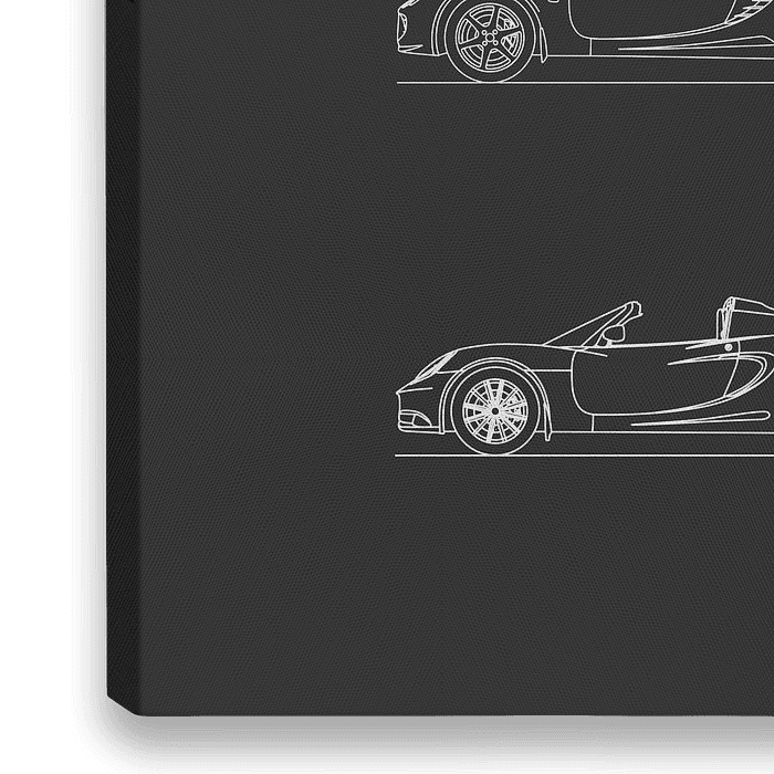 Bestelle diese Illustration Lotus Elise Entwicklung von Artlines Design als Reproduktion auf Leinwand, Alu-Dibond, als Poster, Fototapete oder Acrylglasbild.
