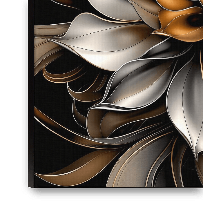Verschnörkelte abstrakte Lotosblume aus Metall mit Gold-, Silber- und Bronzetönen.