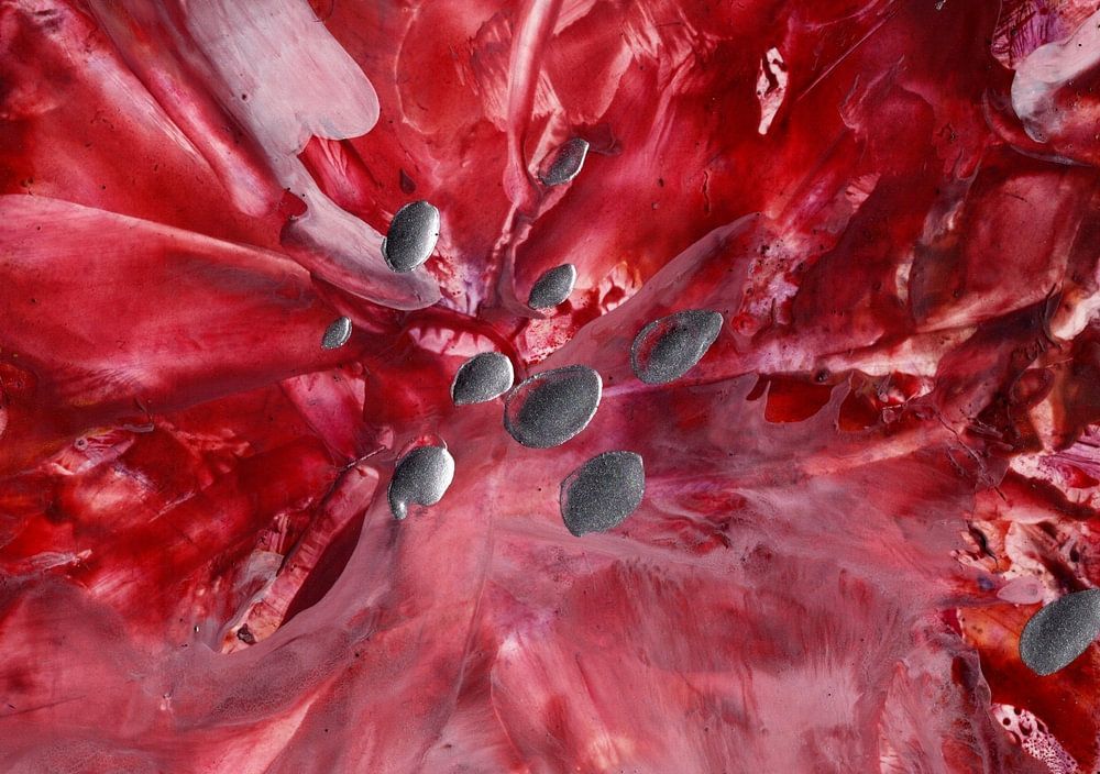 Lassen Sie es schmelzen, fließen und seinen eigenen Weg auf dem Enkaustikpapier finden. Ohne einen Plan oder ein Ziel kommt es zu einer Explosion auf dem Papier...