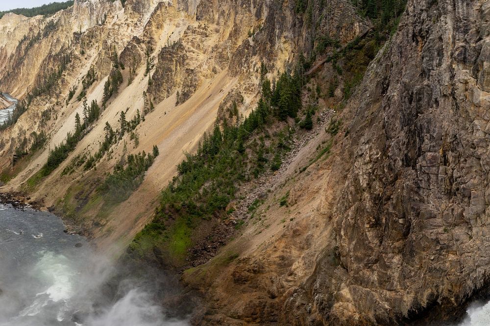 Lower Falls, der größte Wasserfall im Yellowstone, ist zweifellos der berühmteste Wasserfall des Parks. Der 308 Meter hohe Wasserfall ist wahrscheinlich der am zweithäufigsten fotografierte Ort im Yellowstone, nach dem Old Faithful Geysir an erster Stelle. Sowohl von der Ostseite (Inspiration Point, Grandview Point und Lookout Point) als auch von der Westseite (Artists Point) des Grand Canyon hat man zahlreiche Ausblicke auf den Wasserfall, und die meisten von ihnen sind nach einer kurzen Wanderung oder praktisch ohne Wanderung zu sehen. Der Weg zur Spitze der Fälle (eine 3/4 Meile, aber steil und mit vielen Serpentinen) ist ein Muss, denn das Erlebnis, auf der Spitze der Fälle zu stehen, gehört zu den atemberaubendsten Erfahrungen im gesamten Park.
