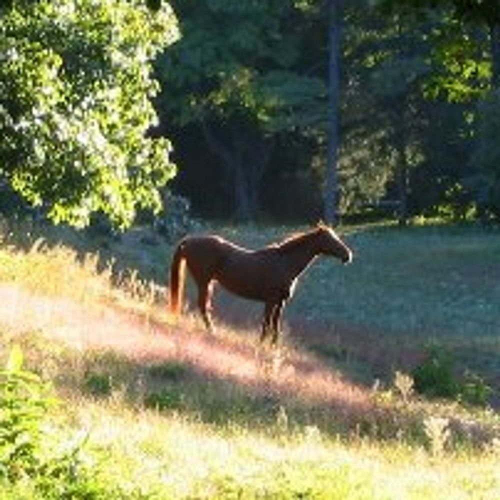 Simply relaxing in a beatiful meadow, suddenly this beautiful horse came up, strolling along till it stopped right in the midlle, at the very moment I finally unpacked my camera and was ready for this shot. A mere second later he took off and was soon vanished among the bushes.