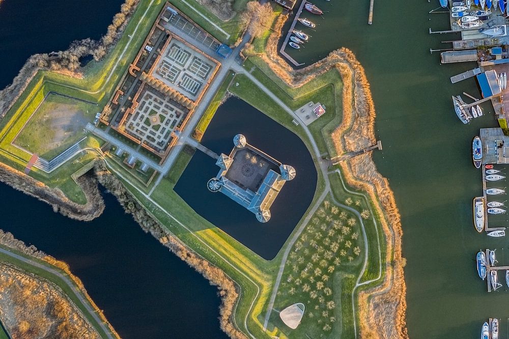 Schloss Muiderslot aus einer anderen Perspektive. Aufgenommen an einem sonnigen Wintertag im Februar.