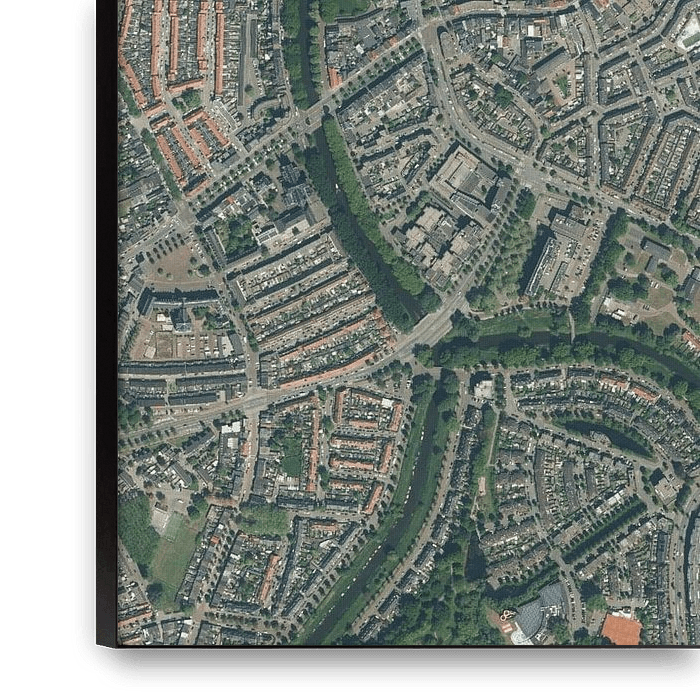 Dieses Luftbild von Breda wurde durch die Anwendung verschiedener GIS-Techniken auf offene Daten erstellt. Das Luftbild wurde mit verschiedenen Filtern bearbeitet, so dass einige Details besser zur Geltung kommen.