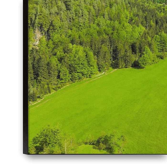 Bestelle dieses Landschafts-Wandbild Luftaufnahme des Tals von Zgornje Jezersko im Frühling von Sjoerd van der Wal Fotografie als Reproduktion auf Leinwand, Alu-Dibond, als Poster, Fototapete oder Acrylglasbild.