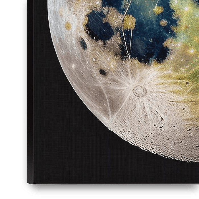 „Lunare Traumlandschaft“ ist eine lebendige und phantasievolle Interpretation des Mondes mit einer beeindruckenden Mischung aus Grün-, Blau- und Gelbtönen. Die reichlich strukturierte Oberfläche hebt Krater und Gelände mit kosmischem Flair hervor und verbindet Realismus mit Fantasie. Dieses Kunstwerk erweckt ein Gefühl himmlischen…