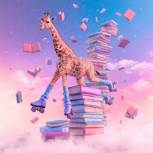 Bestelle das digitale Kunst Bild Lustige Giraffe von Yaya's als Reproduktion auf Leinwand, Alu-Dibond, als Poster, Fototapete oder Acrylglasbild.