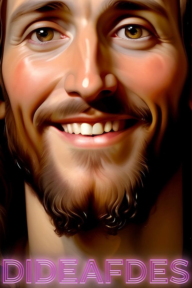 Lustiges bayrisches Jesus Portrait mit gütigem Jesus und Neon Typo, Schriftzug: dideafdes (die darf das) - als Absolution oder Persilschein zum Geburtstag von Frauen & Mädchen