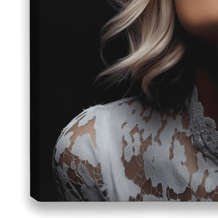 Luxe Frost verkörpert die ultimative Verschmelzung von Haute Couture und exklusivem Winterzauber. Dieses digitale Kunstwerk zeigt eine mondäne Frau in einem zarten Spitzenoberteil in einer geheimnisvollen, nächtlichen Umgebung. Ihre blonden Locken umrahmen perfekt ihr Gesicht, während eine übergroße Skibrille mit funkelnden roségoldenen…